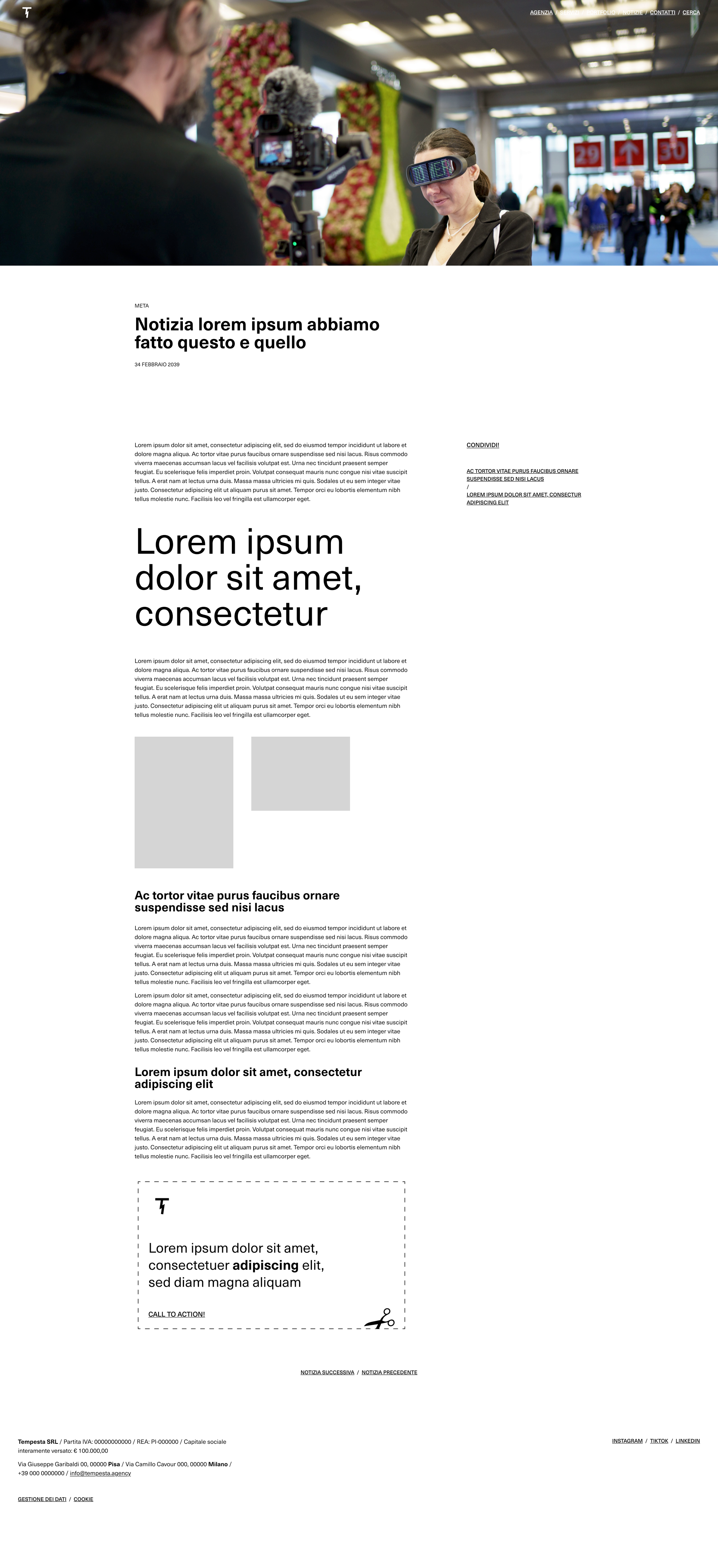 Agenzia: Tempesta / Cliente: Tempesta / Attività: art direction, web design, UX–UI / Collaborazioni: Francesco Dedoni, motion graphics; Francesco Fusi, sviluppo.