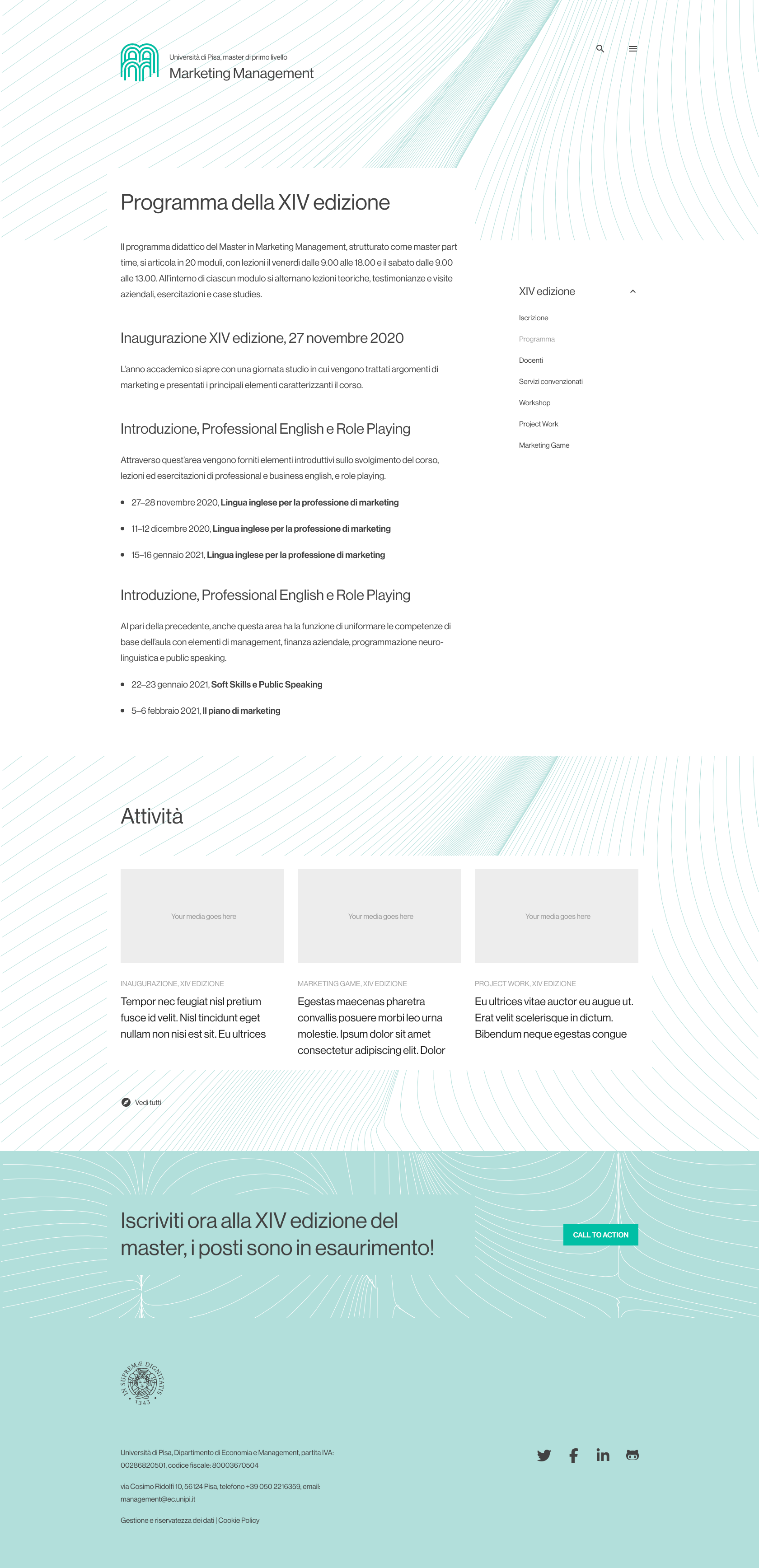 Agenzia: Extra Magnet / Cliente: Università di Pisa, Master Marketing Management / Attività: art direction, web design, UX–UI / Collaborazioni: Roberto Simonelli, sviluppo.
